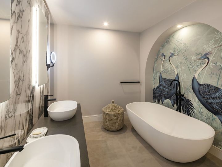 The exterior of the property is characterised by the blend between natural elements and exterior living areas, with a pool and fire-pit to make most of Algarve warm weather.