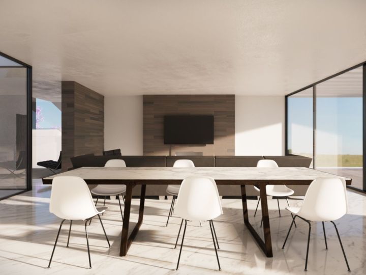 The design of this villa is a harmonious blend of minimalist form and intricate interplay of volumes, all meticulously aligned with the natural contours of the valley. Employing the golden ratio to delineate between distinct spaces, we crafted an elevated social enclave and a tranquil private sanctuary for the bedrooms, all the while preserving the captivating sea views that define this parcel of land. Nestled amidst the primary structures, exterior spaces were thoughtfully crafted to embrace the cascading levels of a two-tiered infinity pool, enhancing the villa's sense of serenity and sophistication.