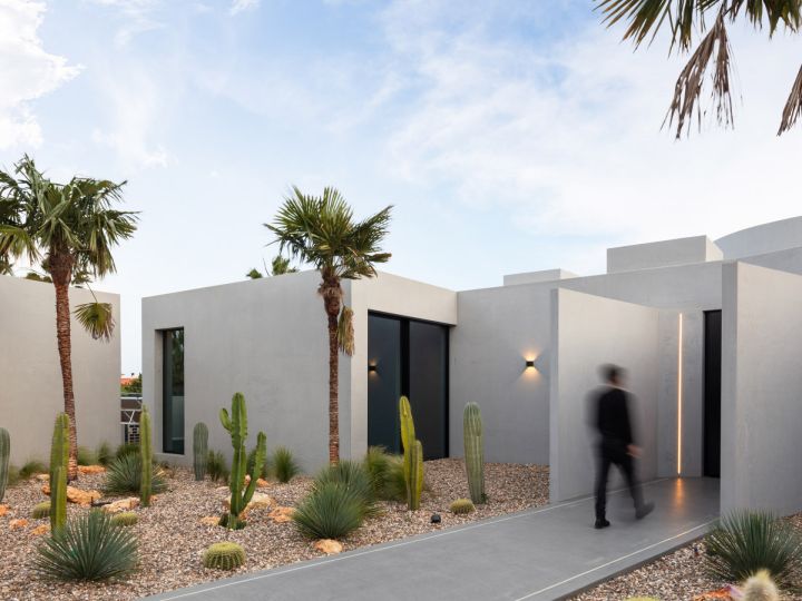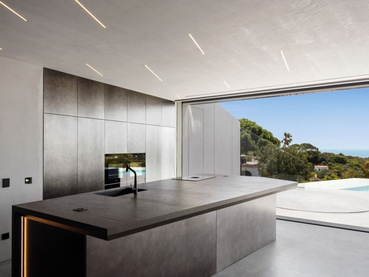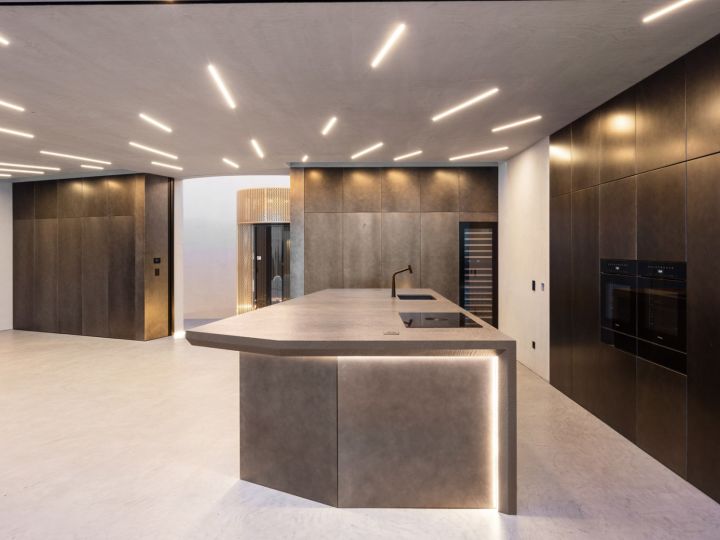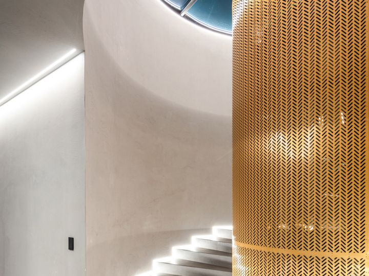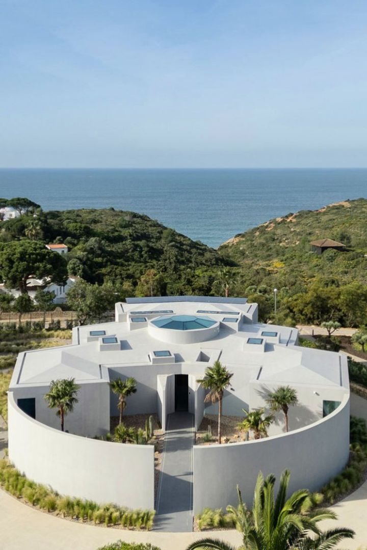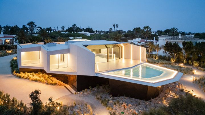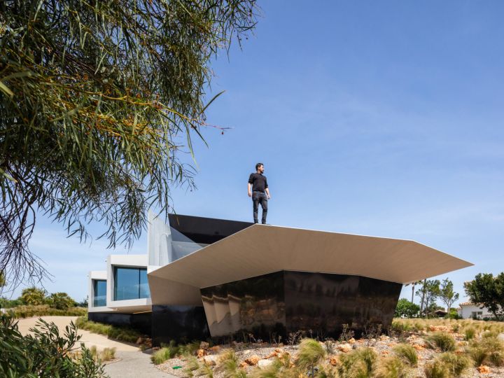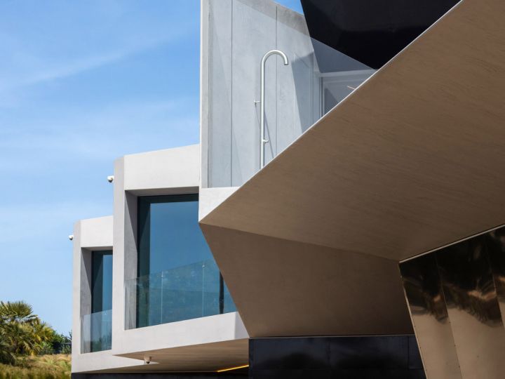 The design of this villa is a testament to the client's aspiration to create a structure evocative of the iconic imagery found in cult science fiction cinema, all while maximizing living space and embracing panoramic sea views on a narrow plot of land. Guided by the principle of the golden ratio, the organization of interior spaces was meticulously crafted, prioritizing the optimization of southern vistas and ensuring privacy from neighbouring plots. Elevating the social spaces above the private quarters served to accentuate the architectural complexity and highlight the structure's presence. The interplay between the elevated swimming pool and the residence draws a dynamic line, gracefully sculpting the landscape and imbuing the project with a sense of vitality and individuality.