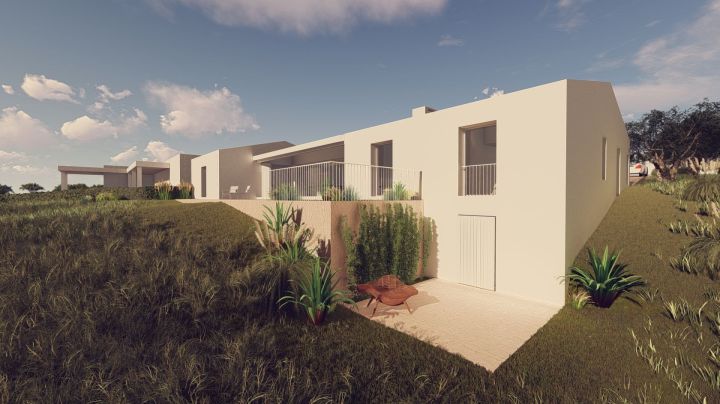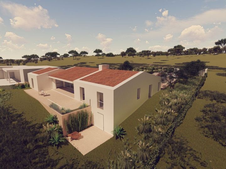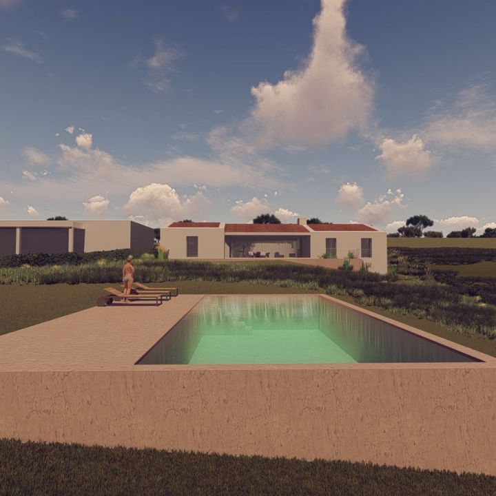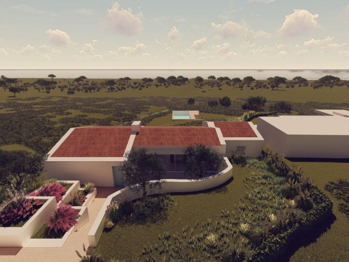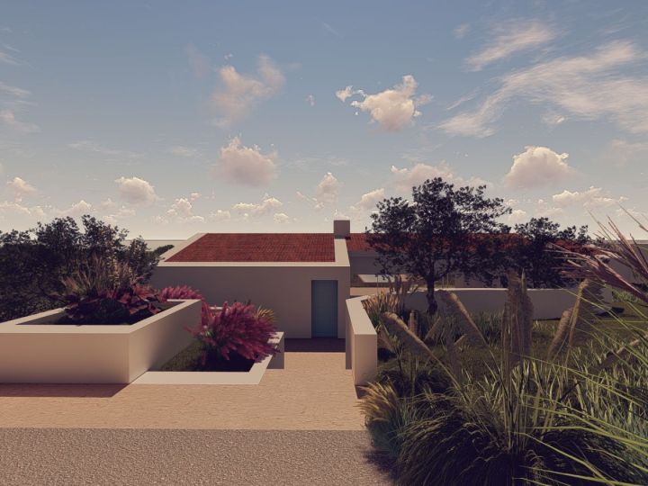 The design ethos behind this rural tourism venture embodies a harmonious fusion of the client's aesthetic aspirations and seamless integration with the natural contours of the land. The original dwelling has been meticulously adapted to encompass two bedrooms, while an extension has been artfully crafted to serve as a spacious interior canopy, offering panoramic vistas of the northern patio and southern terrace. The additional bedrooms have been strategically positioned to capture the enchanting vistas of the pristine valley and the azure expanse of the sea. Embracing the timeless allure of traditional Algarve tile, whitewashed walls, and weathered stone, this property exudes an ageless elegance, evoking a sense of timeless sophistication.