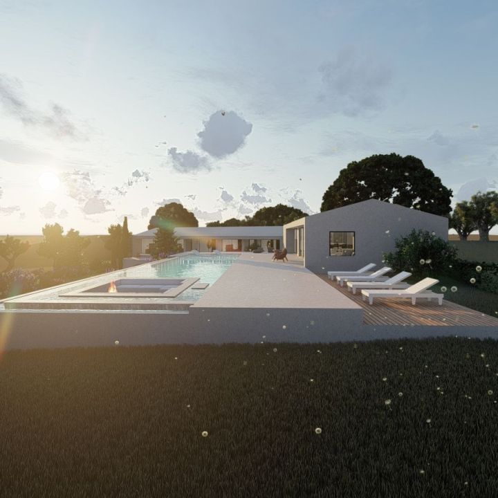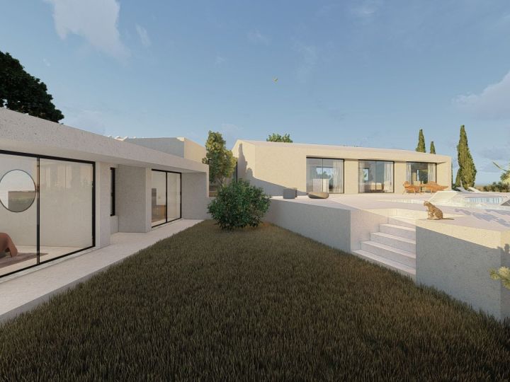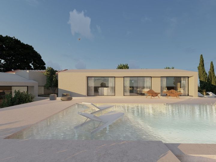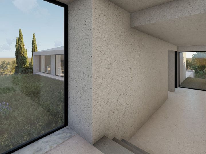 With a subtle entrance that harmonizes the old with the new, this villa represents an exquisite fusion of rustic and contemporary. Strategically situated, the infinity pool gently stretches over the valley, offering views directed towards specific points in the landscape. The four luxurious bedrooms, with their clean lines, invite contemplation while capturing the essence of the beauty of the location.