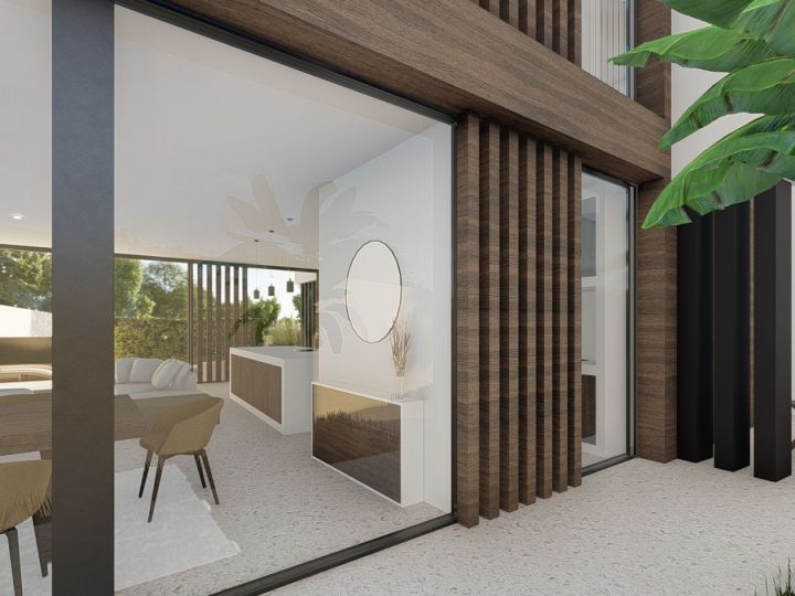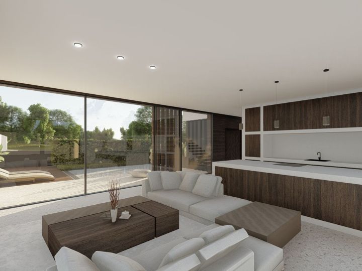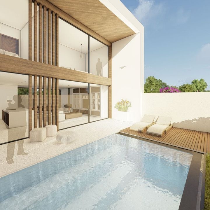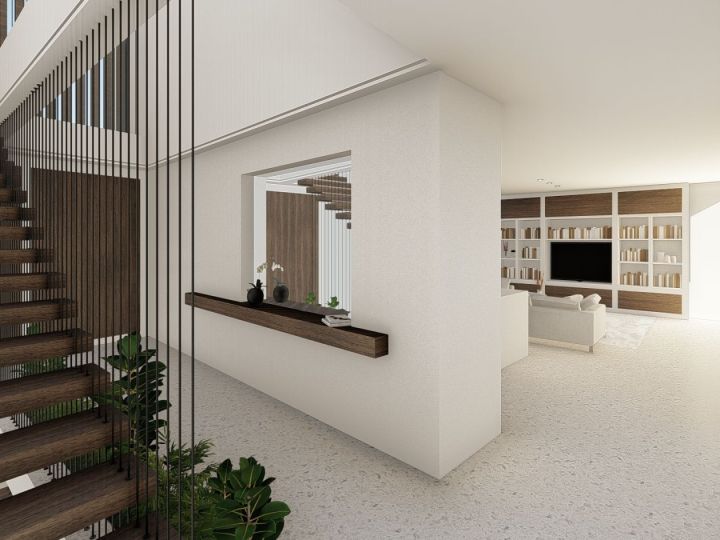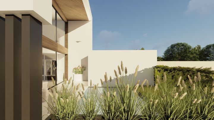 The contemporary style achieved through the use of current forms and materials with a touch of Ibiza-style, transparency, and natural luminosity, with the main goal being the development of a program designed for family living on a small-sized plot, requiring the creation of spaces with interior/exterior continuity.